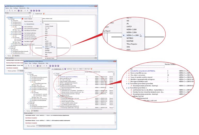 LDRA Testbed and TBvision both have extensive standards checking capability, including industry leading compliance to the MISRA-C:1998, MISRA-C:2004 or MISRA C++:2008, CERT C or Netrino C standards, as examples.