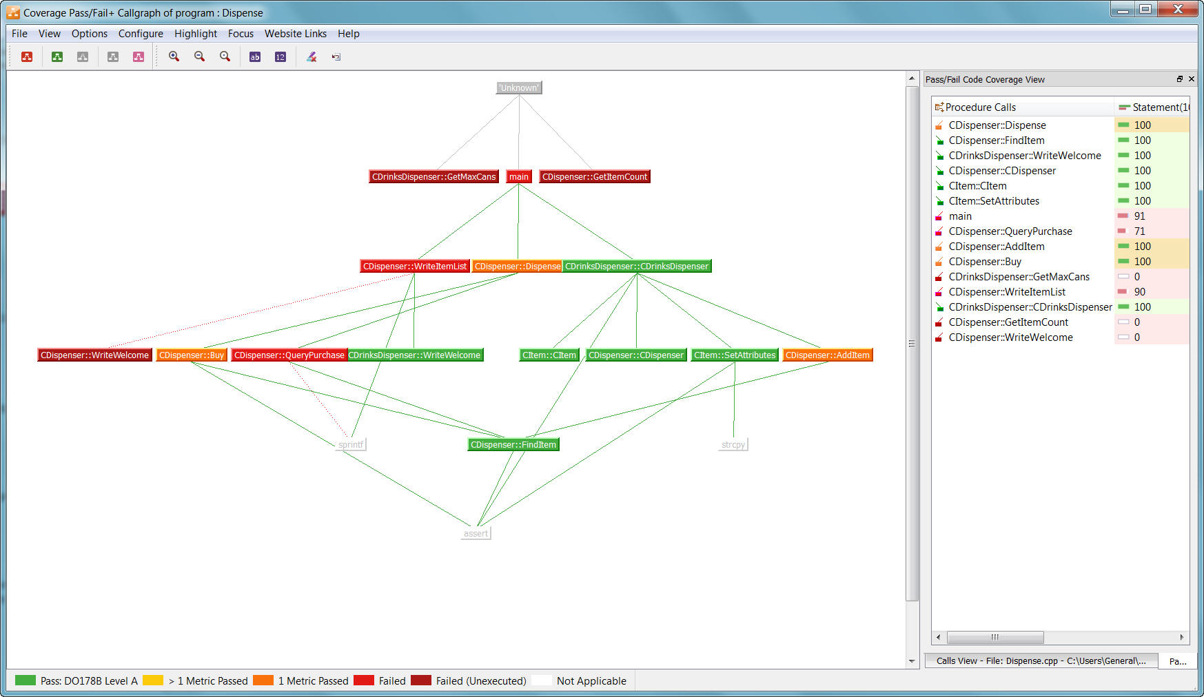 LDRAcover provides test planning documents and colour-coded graphs to help you achieve the desired level of coverage, ranging from procedure/function calls to safety-critical modified condition/decision coverage.